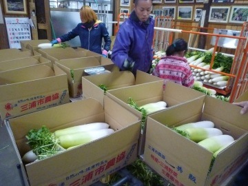 畑から採れたての大根、、忙しい作業です。